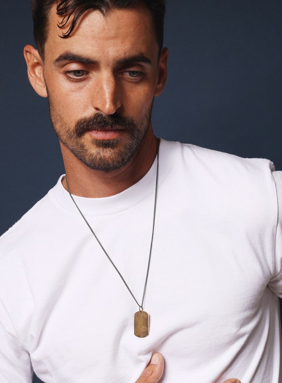 Men S Dog Tag Necklace Rustic Dog Tag Pendant Vintage Etsy